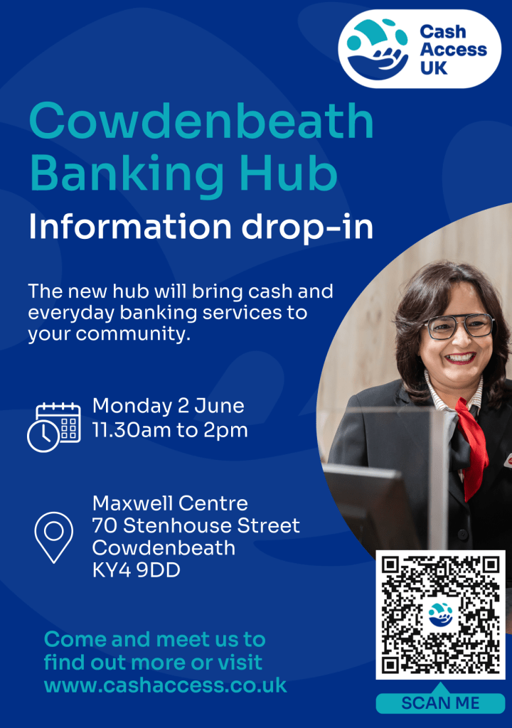 Make sure you drop in and hear more about the banking hub plans for Cowdenbeath on Monday 2nd June or follow Cash Access UK on Facebook for all the latest updates on the opening dates.