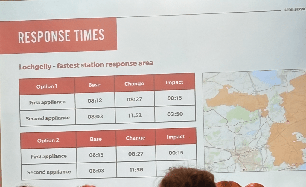 More than 100 locals were at Lochgelly Centre from right across the area served by Lochgelly Fire Station, with the service outlining why atleast one appliance needs to be cut here, resulting in a “moderate” increase in response times they say.