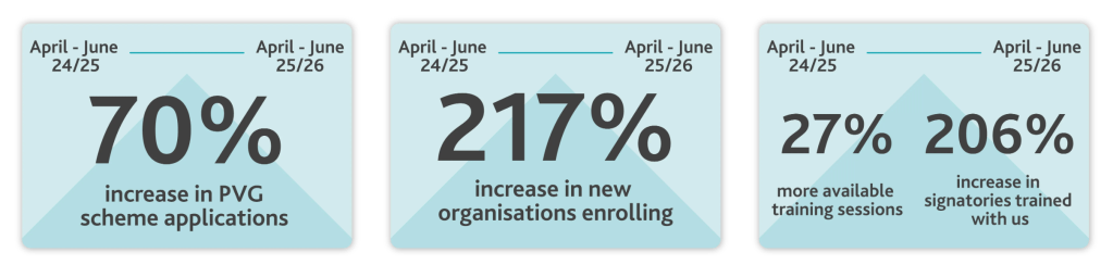 The volume of PVG checks nearly doubled from the previous year, with 49,765 applications completed in July 2025, compared to 25,361 in the same month in 2024 – a 96.2% increase.