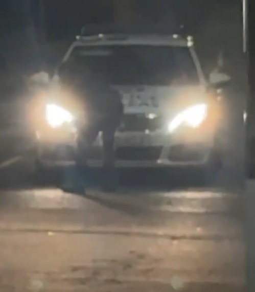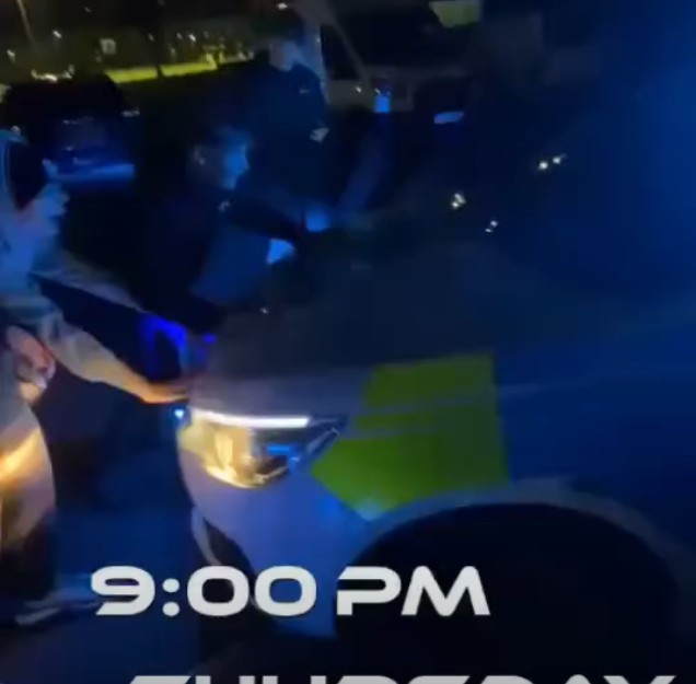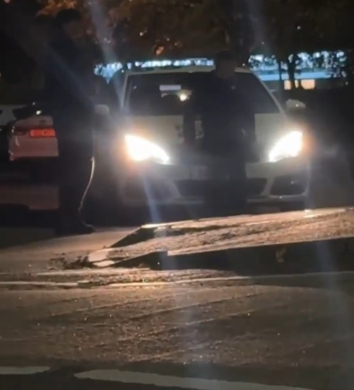 Images and video circulating on social media show several youths attempt to stop Police tackling the disorder by standing in front of their vehicles, while others stood and filmed. A fire was also deliberately set in a grassy area near the refurbished Leisure Centre.