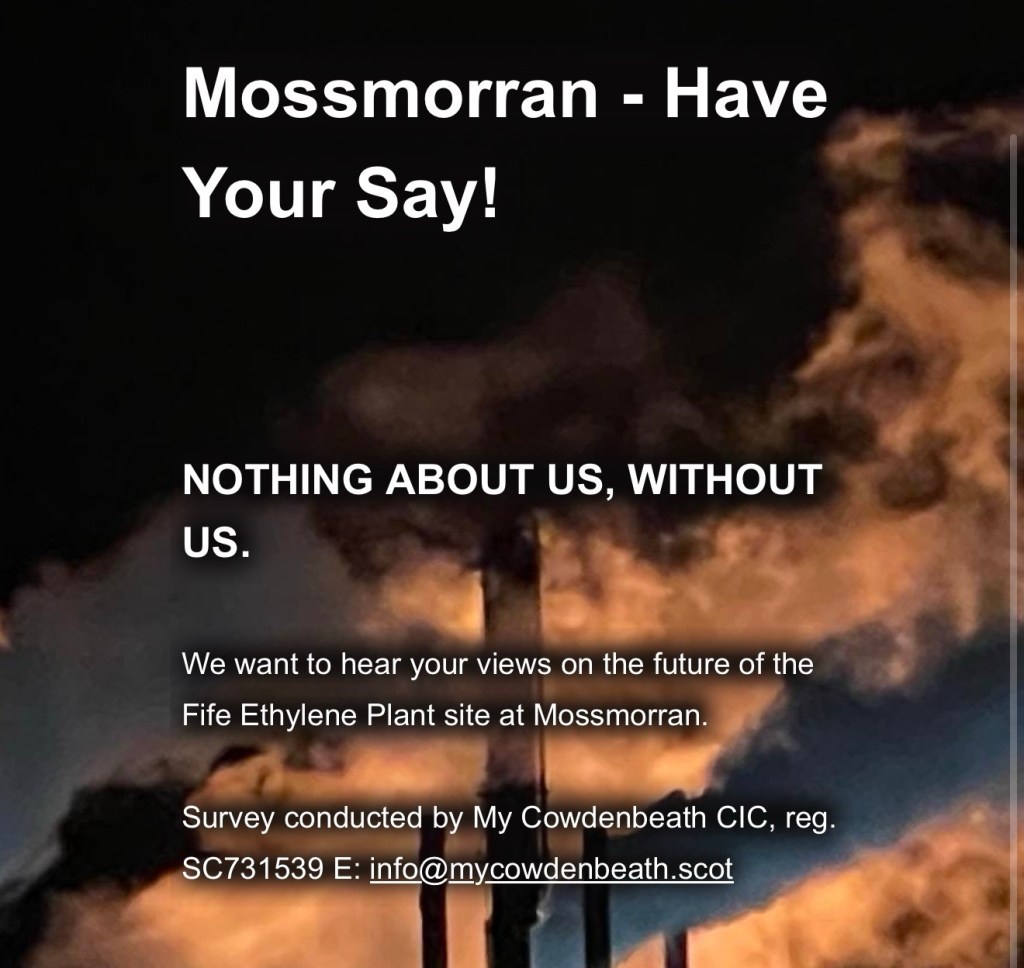 Community body My Cowdenbeath CIC has ask for greater community representation in the Taskforce co-ordinating the response to the Mossmorran closure, and have launched a survey to gather local views on the closure of the ExxonMobil plant.