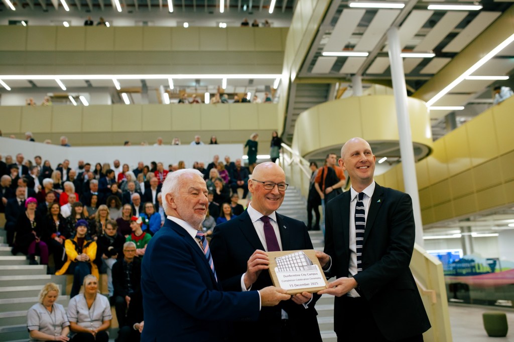 Fife College welcomed First Minister John Swinney MSP to its new Dunfermline City Campus today (15 December) as part of the official completion ceremony for the Dunfermline Learning Campus (DLC).