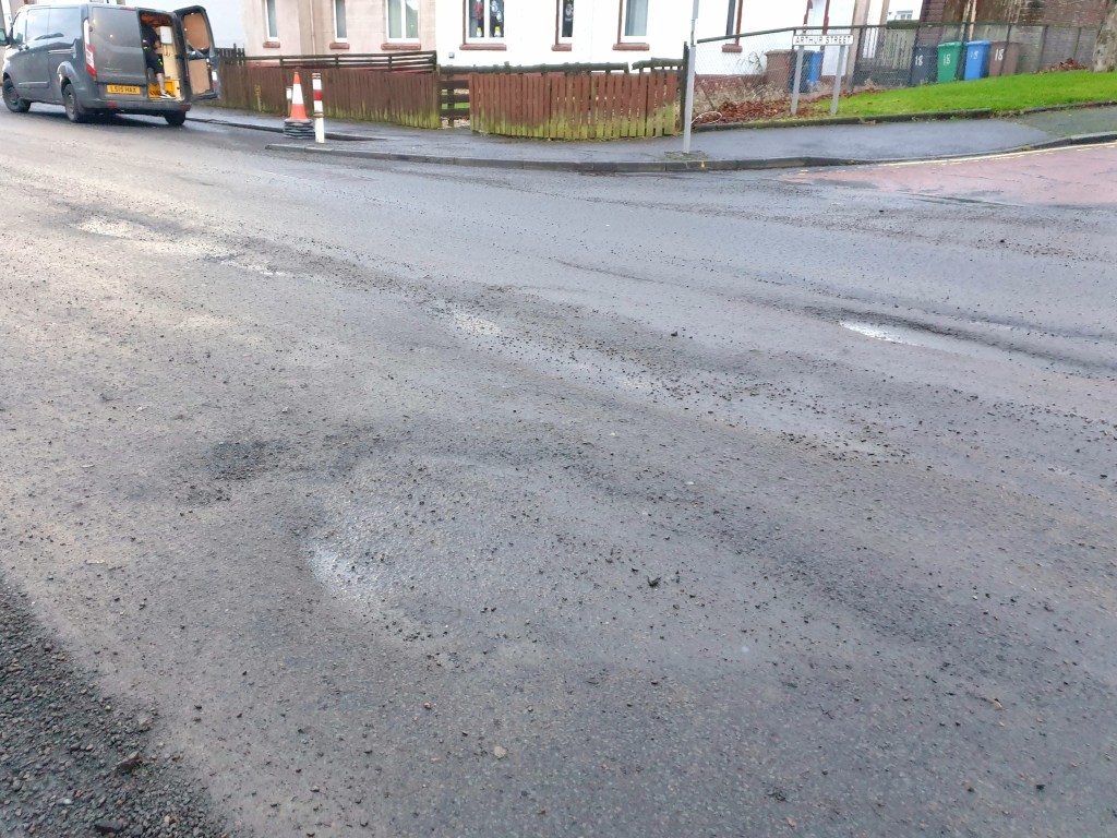 Cowdenbeath’s Cllr Darren Watt previously stated on social media, “It’s an absolute disgrace and embarrassment that Bridge Street is somehow in an even worse condition following resurfacing works” and continued “road users continue to bear the brunt with escalating runnings costs, and the very least they deserve are road surfaces that are safe and fit for purpose.”